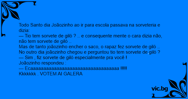 No outro dia joãozinho chegou e perguntou tio tem sorvete de giló ?