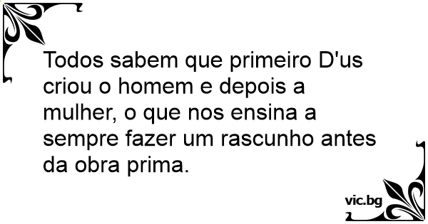 Todos sabem que primeiro D'us criou o homem e depois a mulher, o que nos ensina a sempre fazer um rascunho antes da obra prima.
