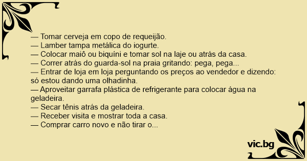 — Correr atrás do guarda-sol na praia gritando: pega, pega...