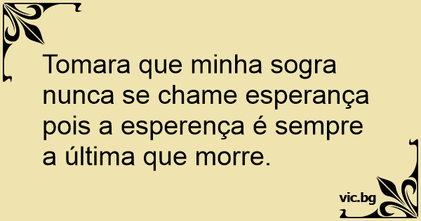Tomara que minha sogra nunca se chame esperança pois a esperença é sempre a última que morre.