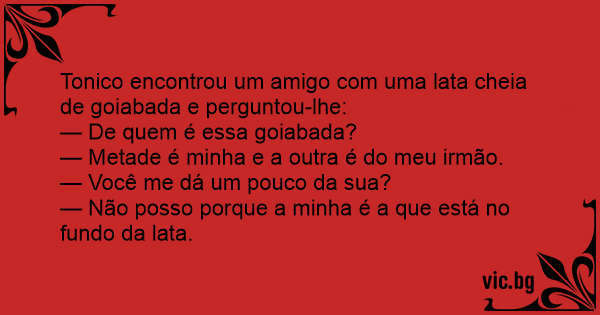 Tonico encontrou um amigo com uma lata cheia de goiabada e perguntou-lhe:
