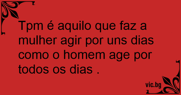 Tpm é aquilo que faz a mulher agir por uns dias como o homem age por todos os dias .