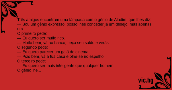 — Sou um gênio expresso, posso lhes conceder já um desejo, mas apenas um.