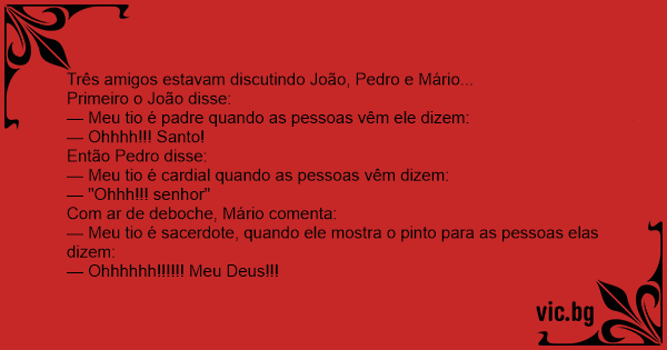 — Meu tio é sacerdote, quando ele mostra o pinto para as pessoas elas dizem: