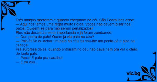 Três amigos morreram e quando chegaram no céu São Pedro lhes disse: