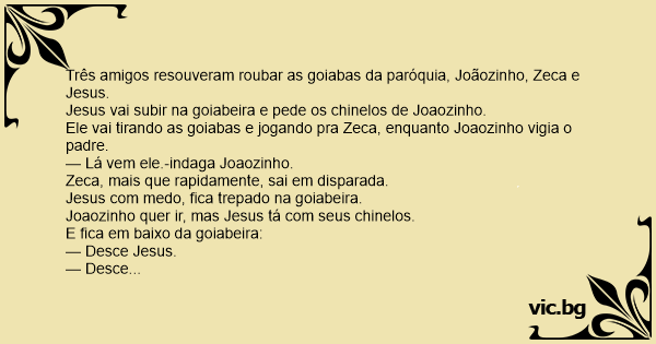 Três amigos resouveram roubar as goiabas da paróquia, Joãozinho, Zeca e Jesus.