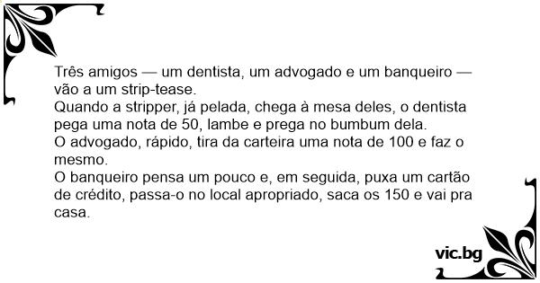 Três amigos — um dentista, um advogado e um banqueiro — vão a um sтriр-tease.
