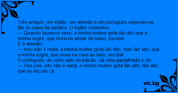 Três amigos, um inglês, um alemão e um português esperam na fila do caixa da padaria. O inglês comentou: