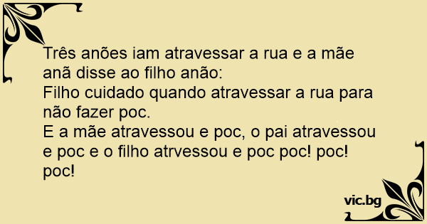 Três anões iam atravessar a rua e a mãe anã disse ao filho anão: