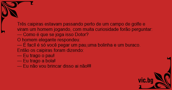 Três caipiras estavam passando perto de um campo de golfe e viram um homem jogando, com muita curiosidade forão perguntar: