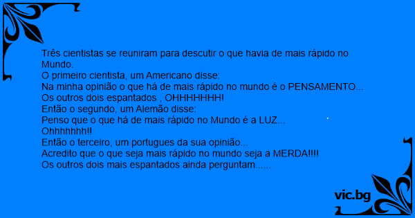 Na minha opinião o que há de mais rápido no mundo é o PENSAMENTO...