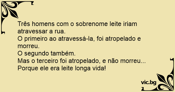 Três homens com o sobrenome leite iriam atravessar a rua.