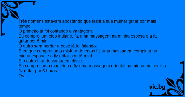 Três homens estavam apostando que fazia a sua mulher gritar por mais tempo.