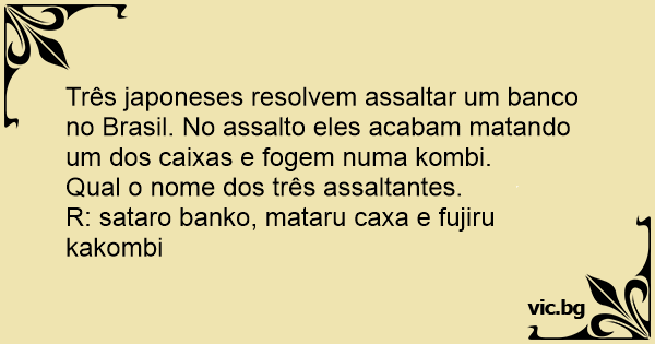 Três japoneses resolvem assaltar um banco no Brasil. No assalto eles acabam matando um dos caixas e fogem numa kombi.