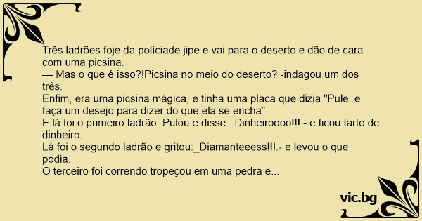 O terceiro foi correndo tropeçou em uma pedra e gritou:_Merdaaaa!!!. Bom...