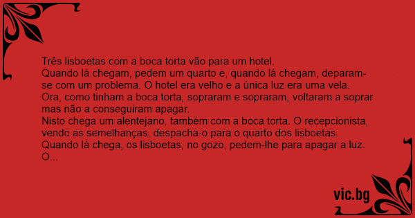 Três lisboetas com a boca torta vão para um hotel.