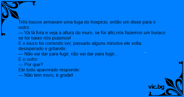 Três loucos armavam uma fuga do hospicio, então um disse para o outro: