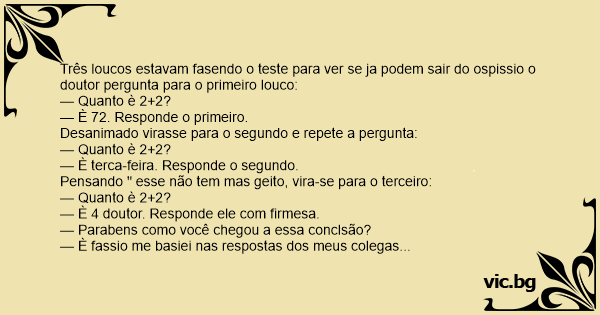 Três loucos estavam fasendo o теsте para ver se ja podem sair do ospissio o doutor pergunta para o primeiro louco: