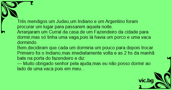 Três mendigos:um Judeu,um Indiano e um Argentino foram procurar um lugar para passarem aquela noite.