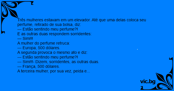 Três mulheres estavam em um elevador. Até que uma delas coloca seu perfume, retirado de sua bolsa, diz: