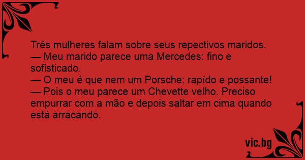 — Meu marido parece uma Mercedes: fino e sofisticado.