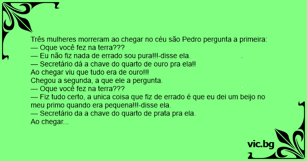 Três mulheres morreram ao chegar no céu são Pedro pergunta a primeira: