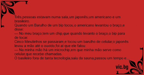 Três,pessoas estavam numa sala,um japonês,um americano e um brasileiro.