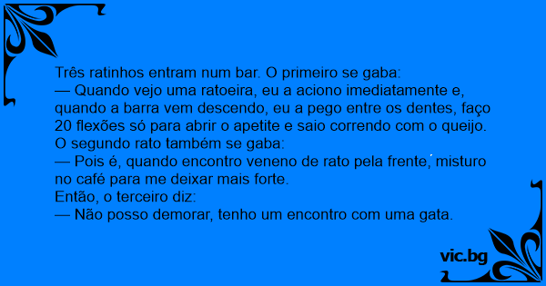 Três ratinhos entram num bar. O primeiro se gaba: