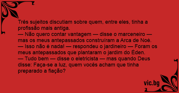 Três sujeitos discutiam sobre quem, entre eles, tinha a profissão mais antiga.