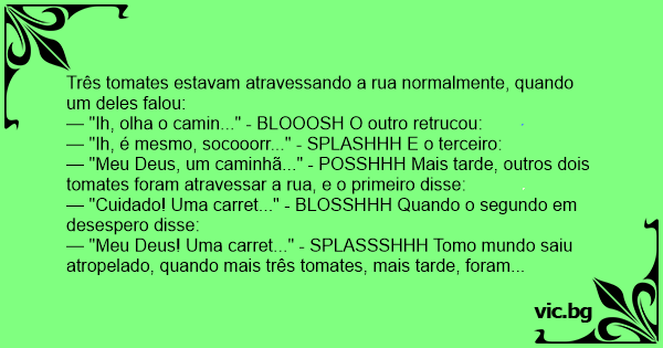 Três tomates estavam atravessando a rua normalmente, quando um deles falou: