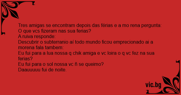 Tres amigas se encontram depois das férias e a mo rena pergunta: