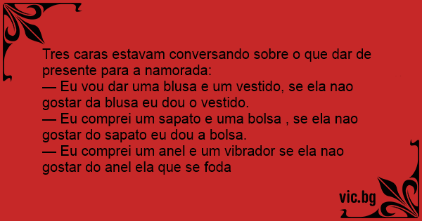 — Eu comprei um anel e um vibrador se ela nao gostar do anel ela que se foda