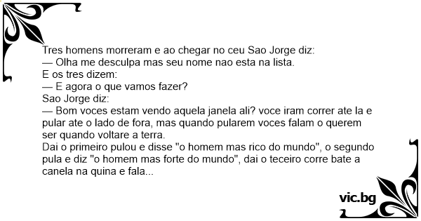 Tres homens morreram e ao chegar no ceu Sao Jorge diz: