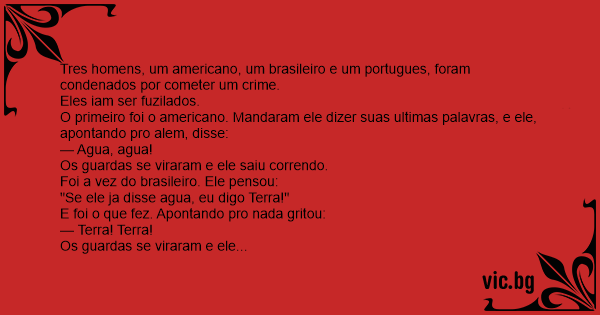 O primeiro foi o americano. Mandaram ele dizer suas ultimas palavras, e ele, apontando pro alem, disse:
