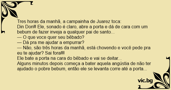 Tres horas da manhã, a campainha de Juarez toca: