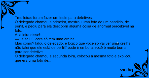 — Loira burra, falou o delegado. É logico que voce só vai ver nele um olho, não falei que está de perfil? vá embora, és muito burra para ser detetive.