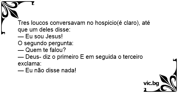 Tres loucos conversavam no hospicio(é claro), até que um deles disse: