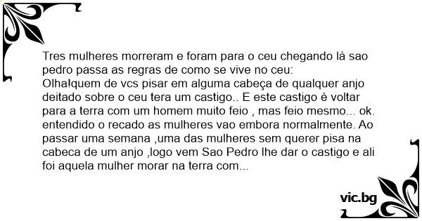 Tres mulheres morreram e foram para o ceu chegando là sao pedro passa as regras de como se vive no ceu: