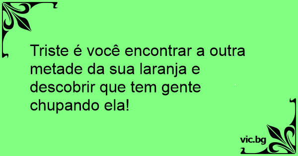 Triste é você encontrar a outra metade da sua laranja e descobrir que tem gente chupando ela!