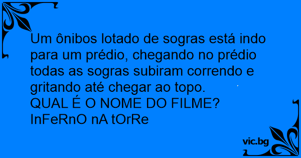 Um ônibos lotado de sogras está indo para um prédio, chegando no prédio todas as sogras subiram correndo e gritando até chegar ao topo.