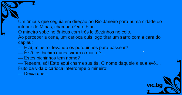 O mineiro sobe no ônibus com três leitõezinhos no colo.