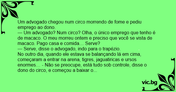 Um advogado chegou num circo morrendo de fome e pediu emprego ao dono.