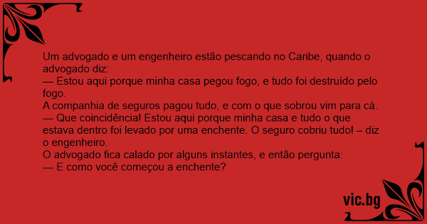 Um advogado e um engenheiro estão pescando no Caribe, quando o advogado diz: