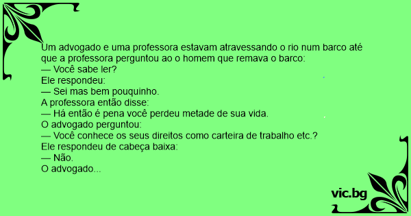 Um advogado e uma professora estavam atravessando o rio num barco até que a professora perguntou ao o homem que remava o barco: