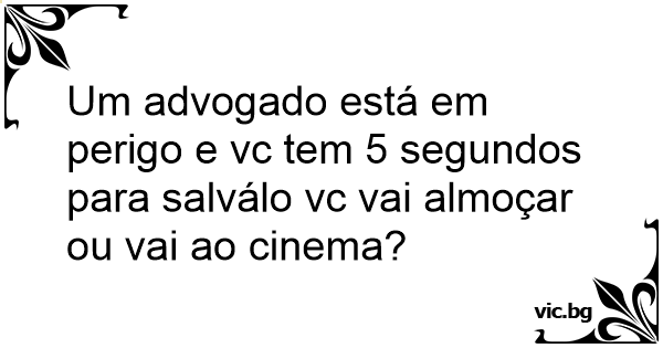 Um advogado está em perigo e vc tem 5 segundos para salválo vc vai almoçar ou vai ao cinema?