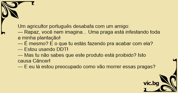 — Rapaz, você nem imagina... Uma praga está infestando toda a minha plantação!