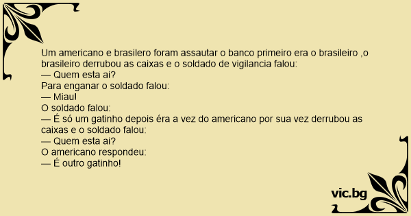 Um americano e brasilero foram assautar o banco primeiro era o brasileiro ,o brasileiro derrubou as caixas e o soldado de vigilancia falou: