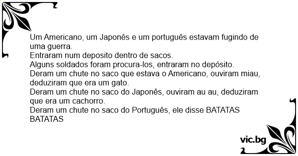 Um Americano, um Japonês e um português estavam fugindo de uma guerra.