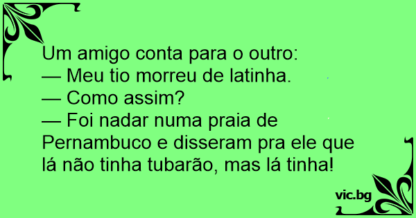 — Foi nadar numa praia de Pernambuco e disseram pra ele que lá não tinha tubarão, mas lá tinha!