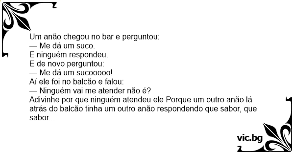 Adivinhe por que ninguém atendeu ele Porque um outro anão lá atrás do balcão tinha um outro anão respondendo que sabor, que sabor...